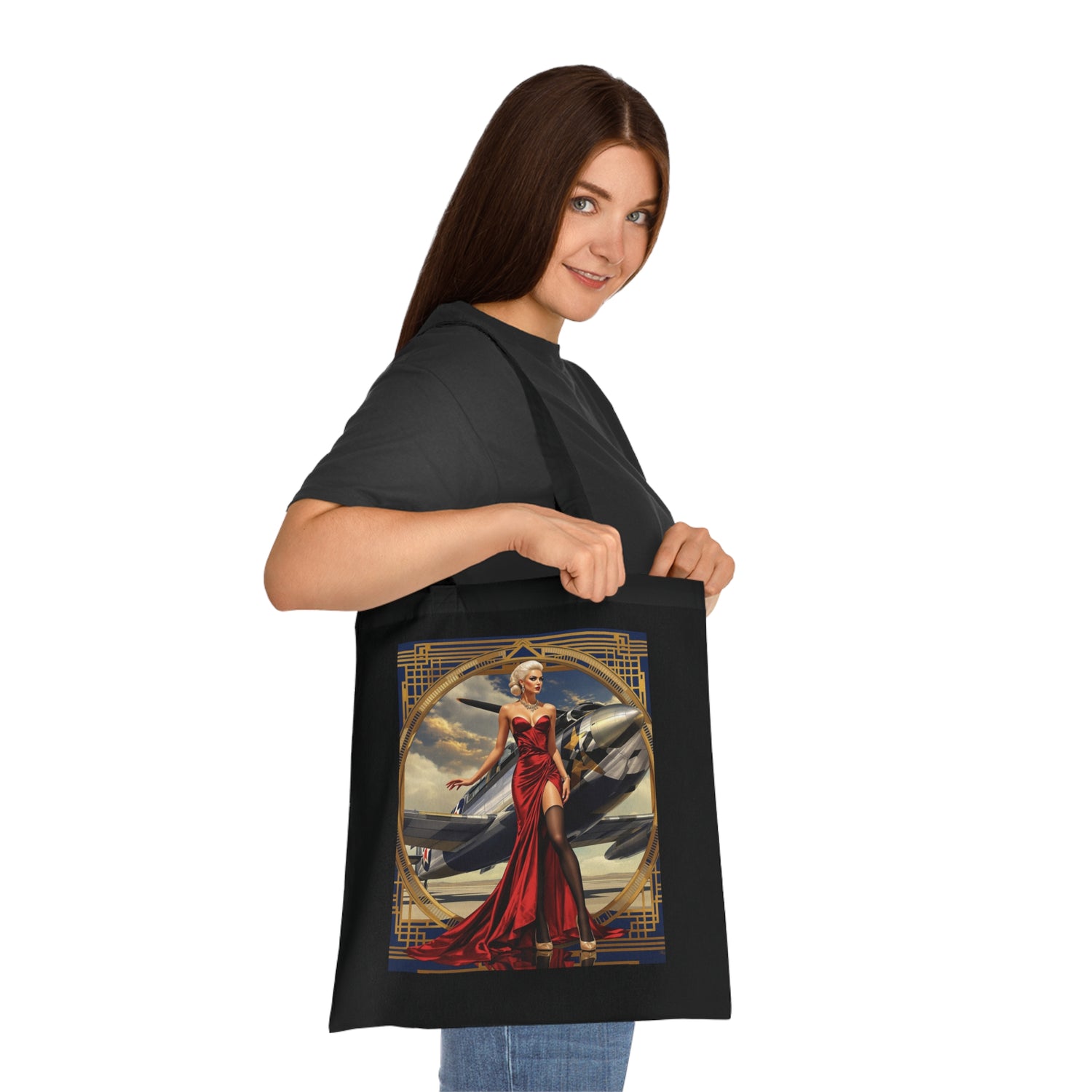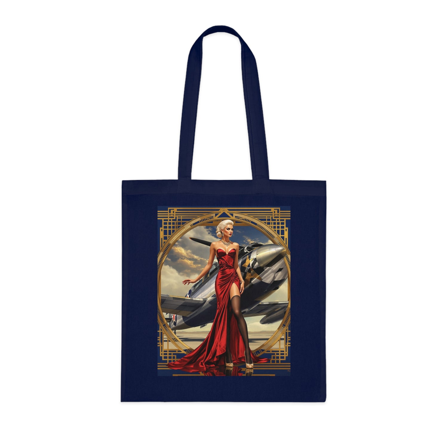 Vintage Pinup Tote Bag — Retro Glamour Woman in Red Dress Artwork Cotton Tote