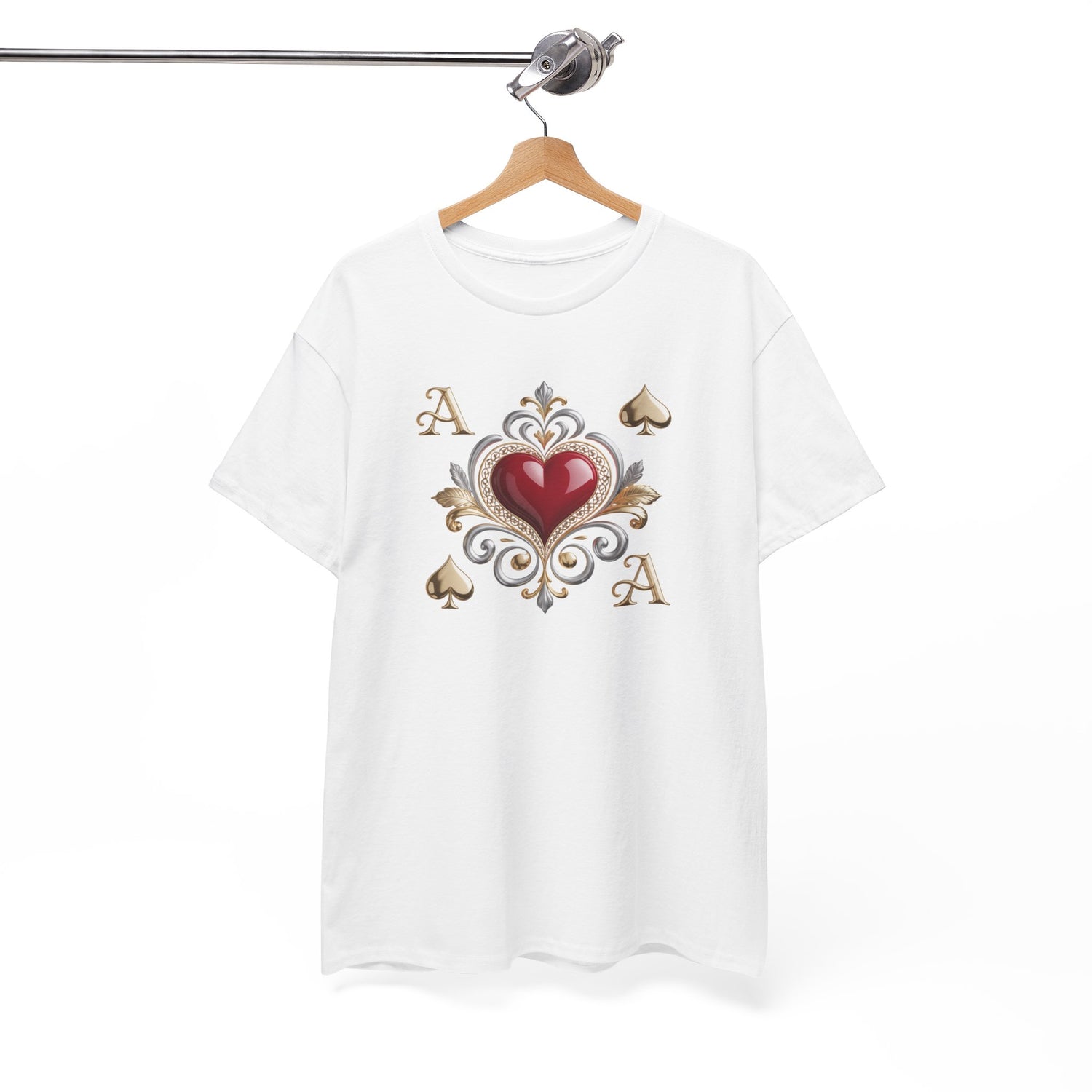 Ace of Hearts T-Shirt featuring an ornate playing card heart design, perfect for game nights and casual outings.