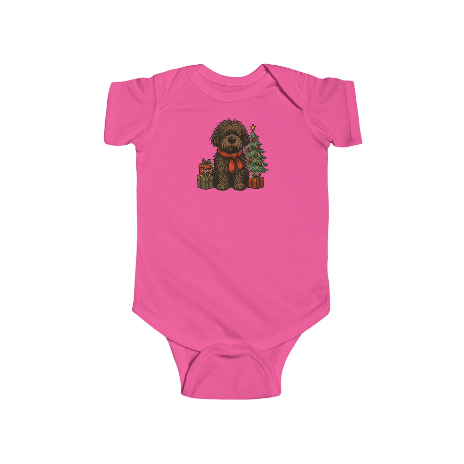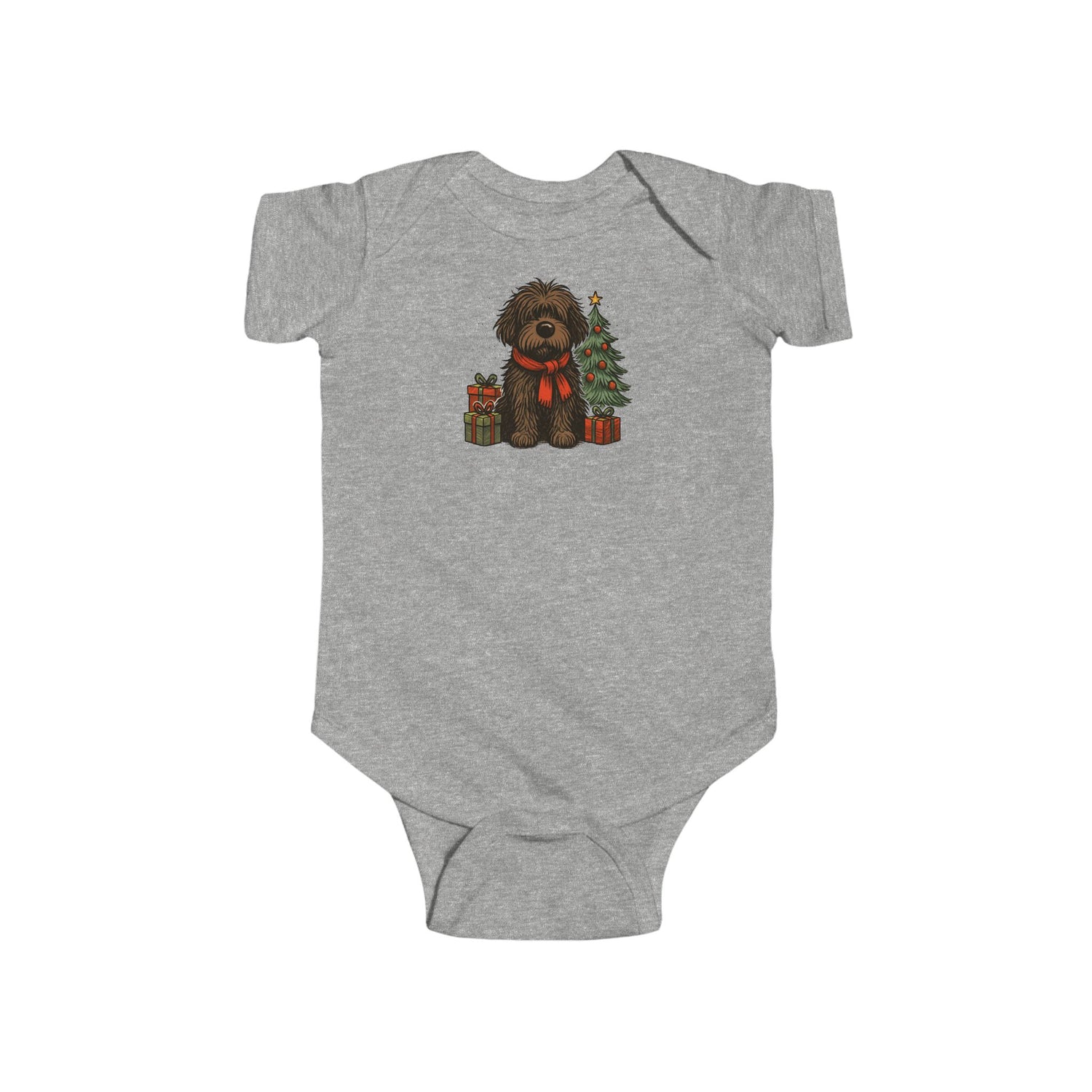 Baby Bodysuit — Cute Christmas Puppy with Tree & Presents Infant Onesie