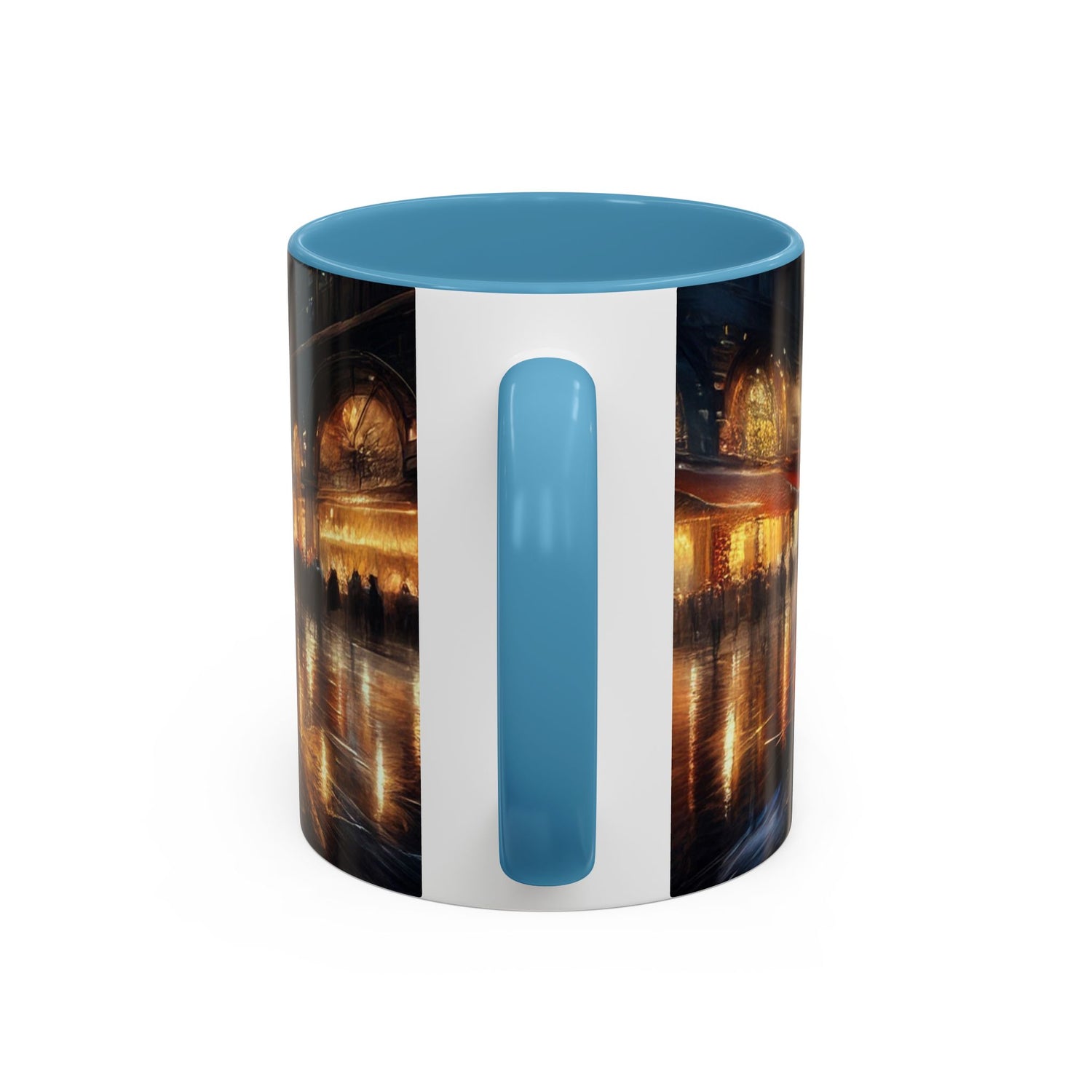 Elegant Nighttime Cityscape Coffee Mug showcasing vibrant colors, perfect for coffee lovers.