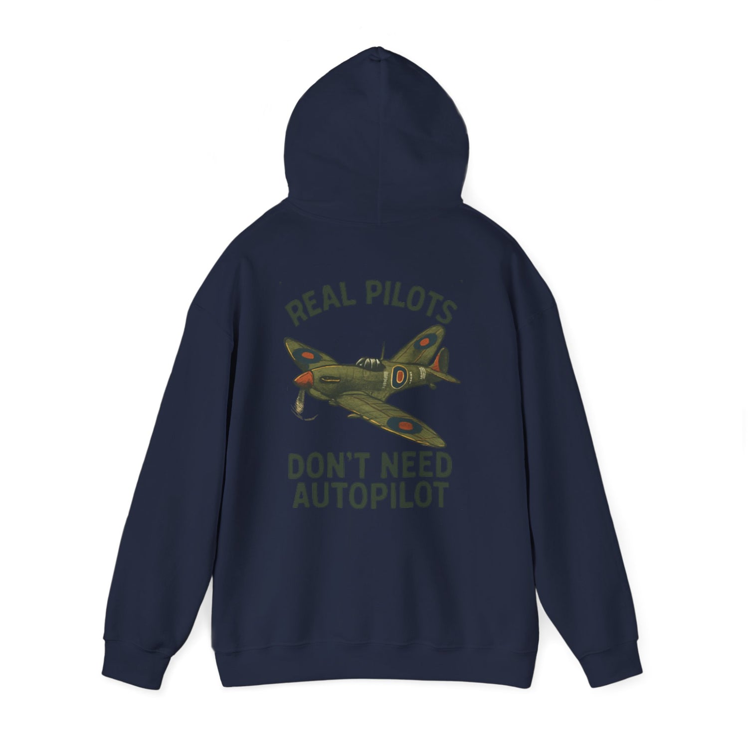 Pilot Hoodie – 'Real Pilots Don't Need Autopilot' Vintage WWII Plane Sweatshirt