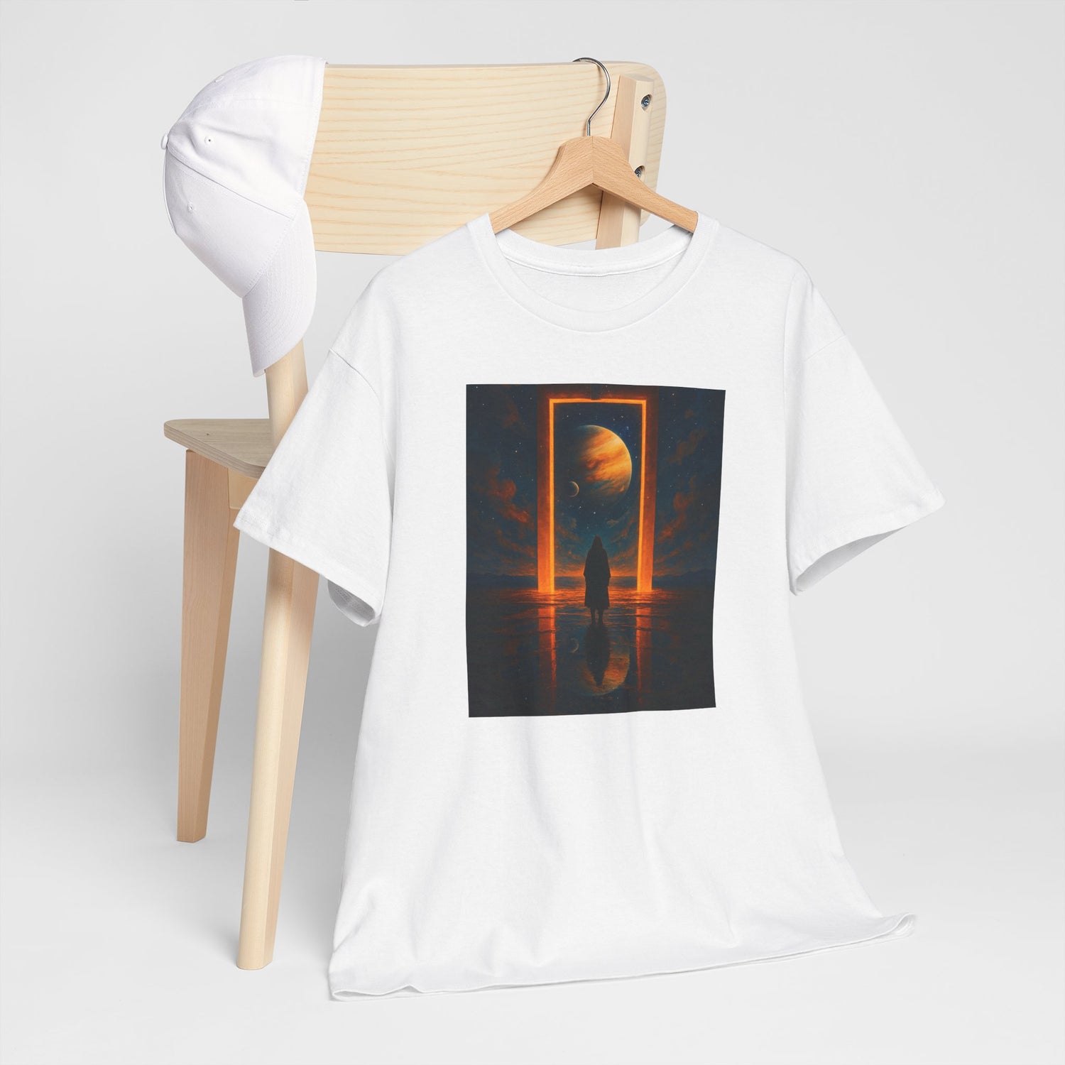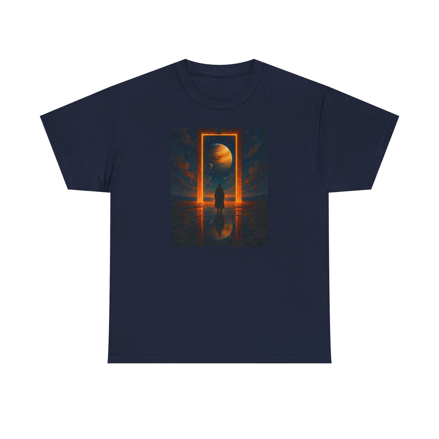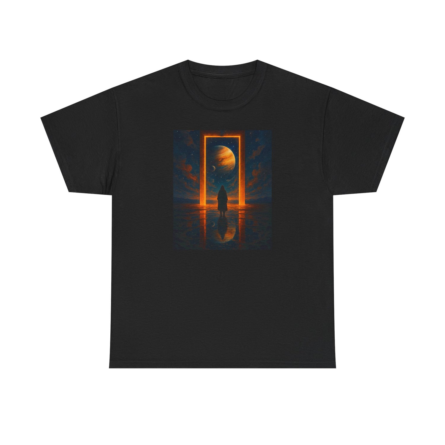 Surreal Portal Moon Tee — Orange Cosmic Gateway Graphic T-Shirt