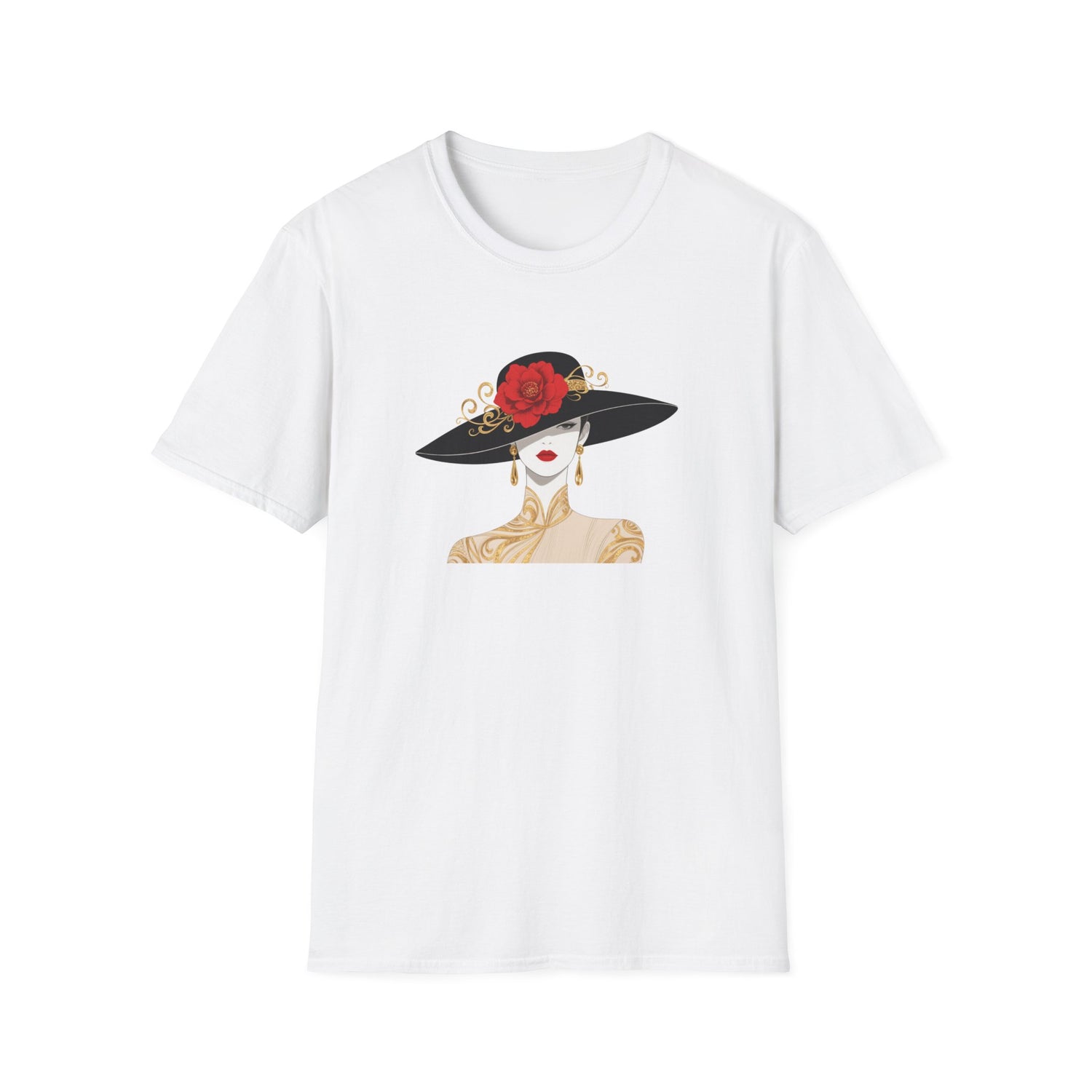 Elegant Lady with Rose Hat T-Shirt