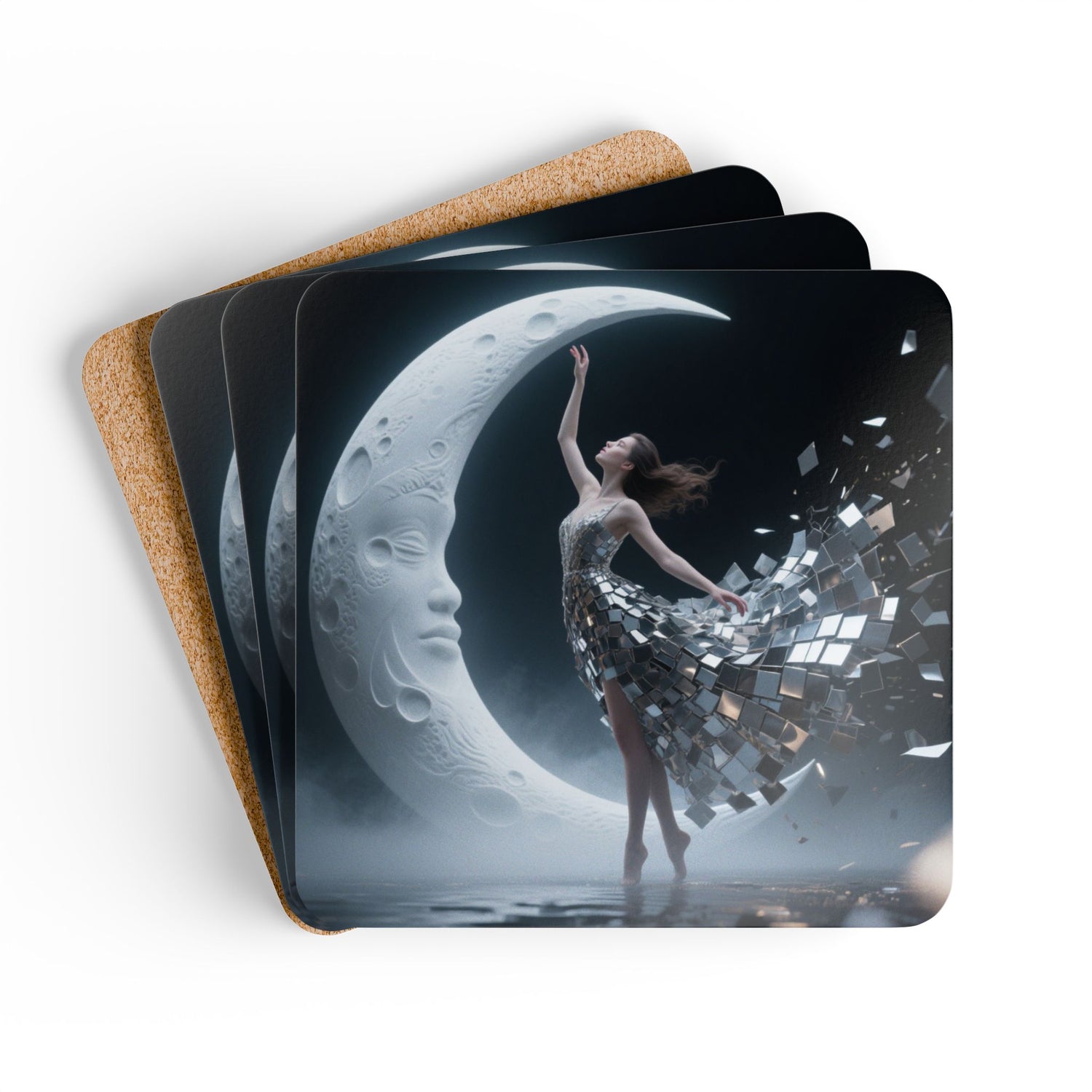 Lunar Ballerina Corkwood Coasters – Moon Dance Decorative Drink Coaster Set