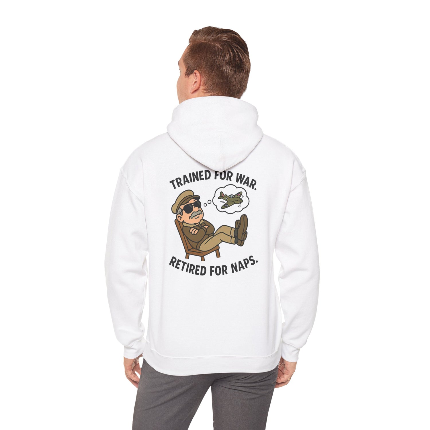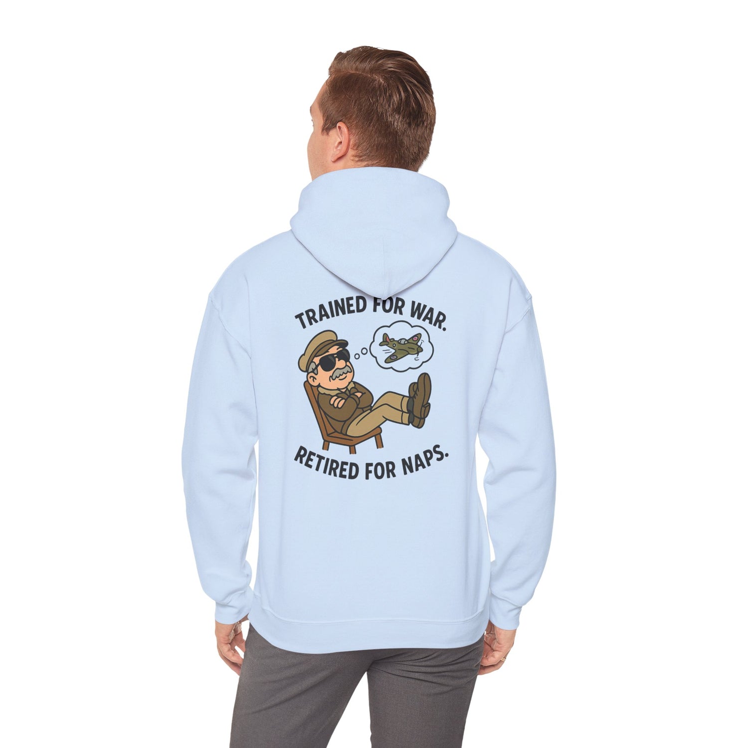 Retired Pilot Hooded Sweatshirt — "Trained for War, Retired for Naps"