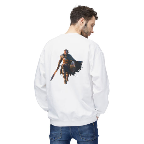 Knight Warrior Crewneck Sweatshirt — Medieval Shield & Sword Back Graphic US