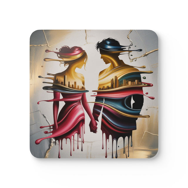 Abstract Couples Cork Coaster Set — Romantic Drip Art Drink Coasters - Cork / 3.75" × 3.75" / Square is backordered and will ship as soon as it is back in stock.