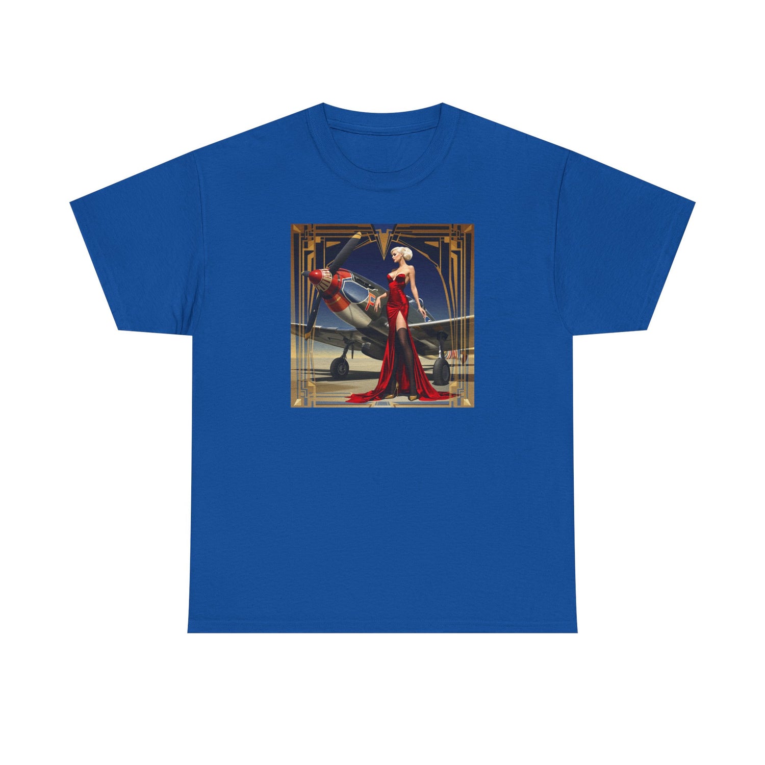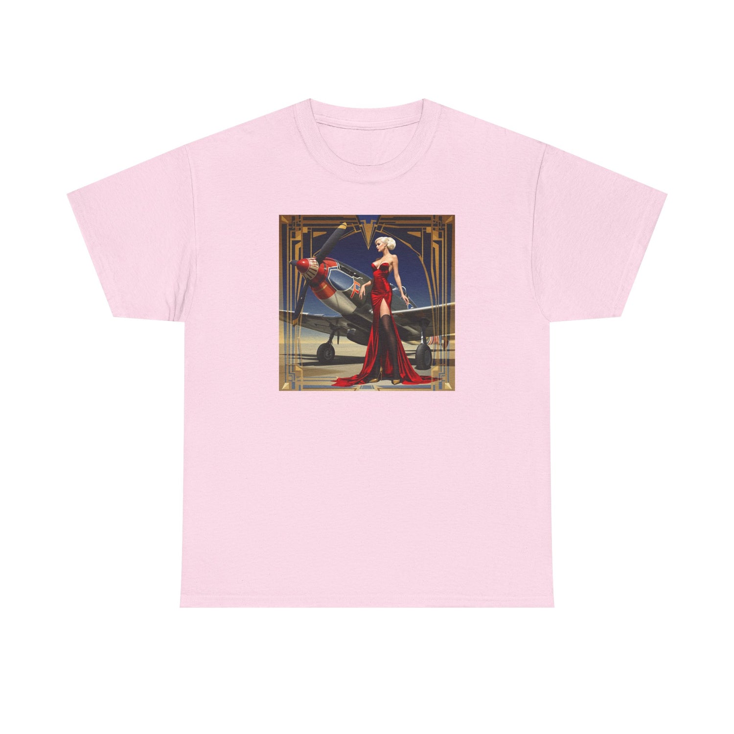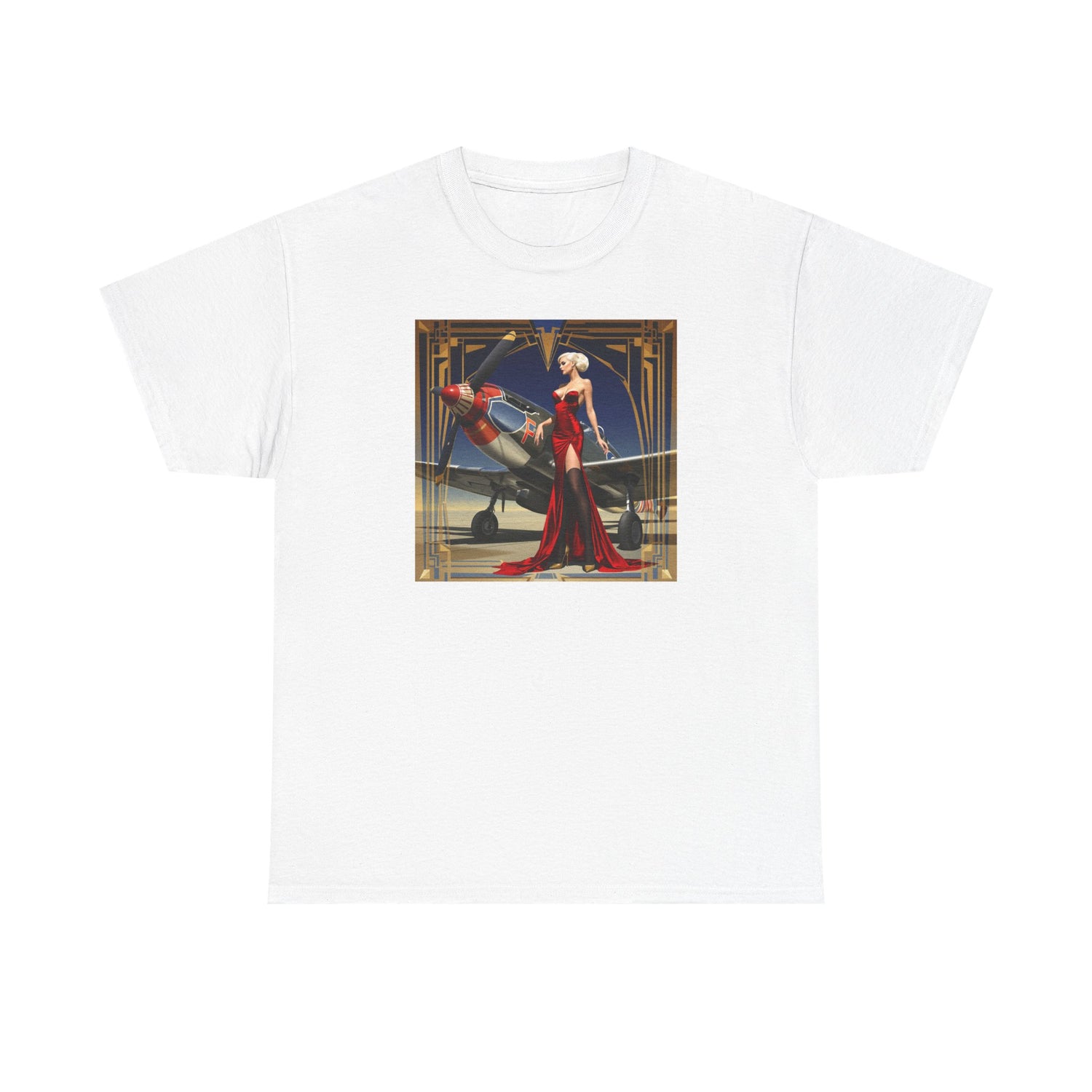 Art Deco Aviatrix Tee – Vintage Glamour Plane Graphic T-Shirt