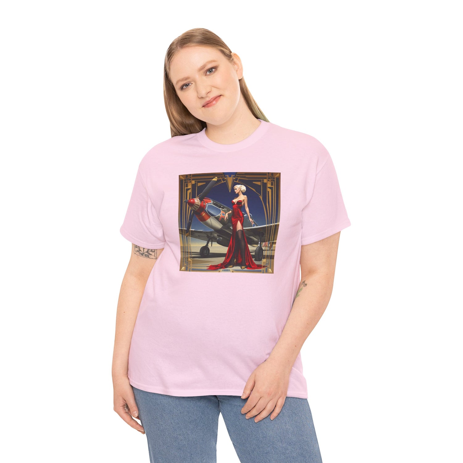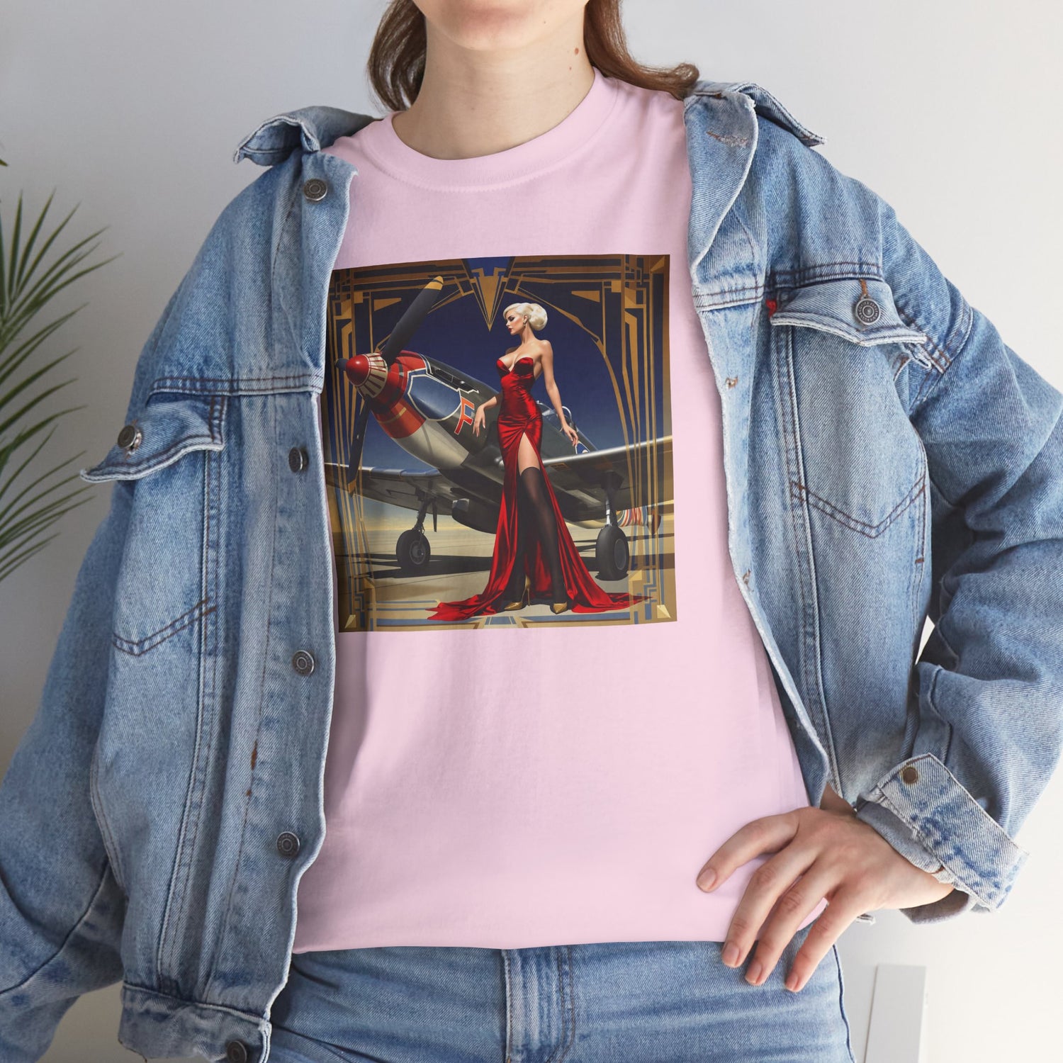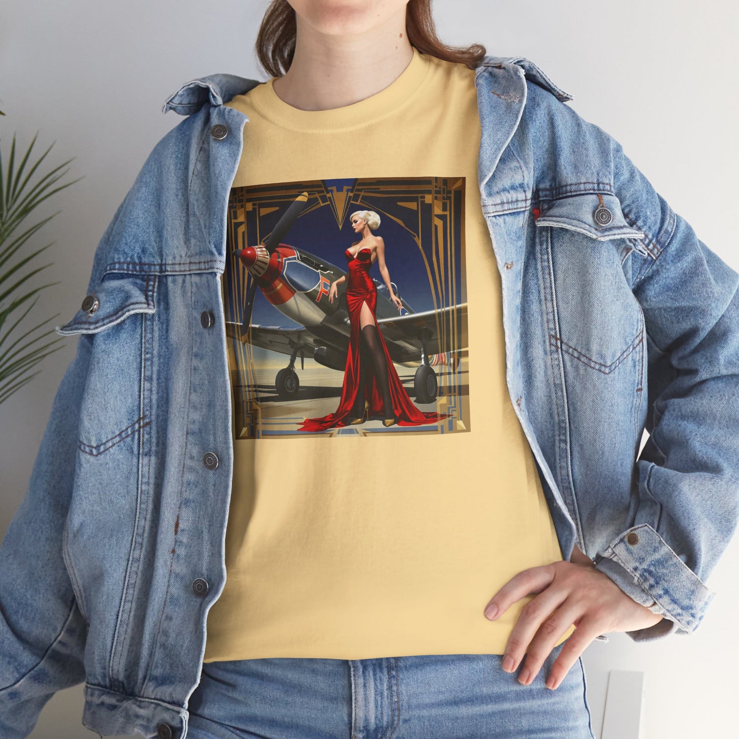 Art Deco Aviatrix Tee – Vintage Glamour Plane Graphic T-Shirt