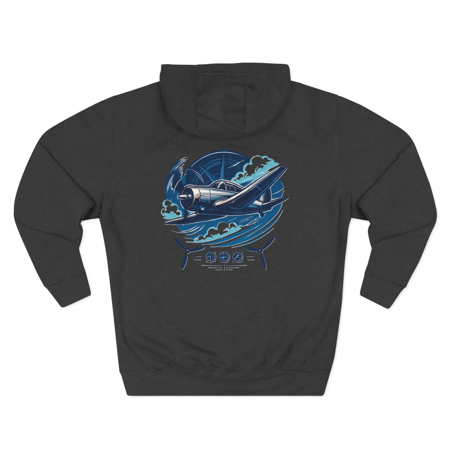 Aviator Three-Panel Hoodie — Vintage Airplane Flight Graphic Fleece