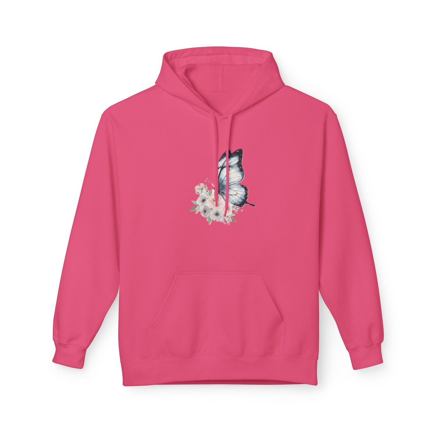Butterfly Floral Hoodie — Watercolor Blue Butterfly with Pink Flowers US - S / Pink Lemonade is backordered and will ship as soon as it is back in stock.