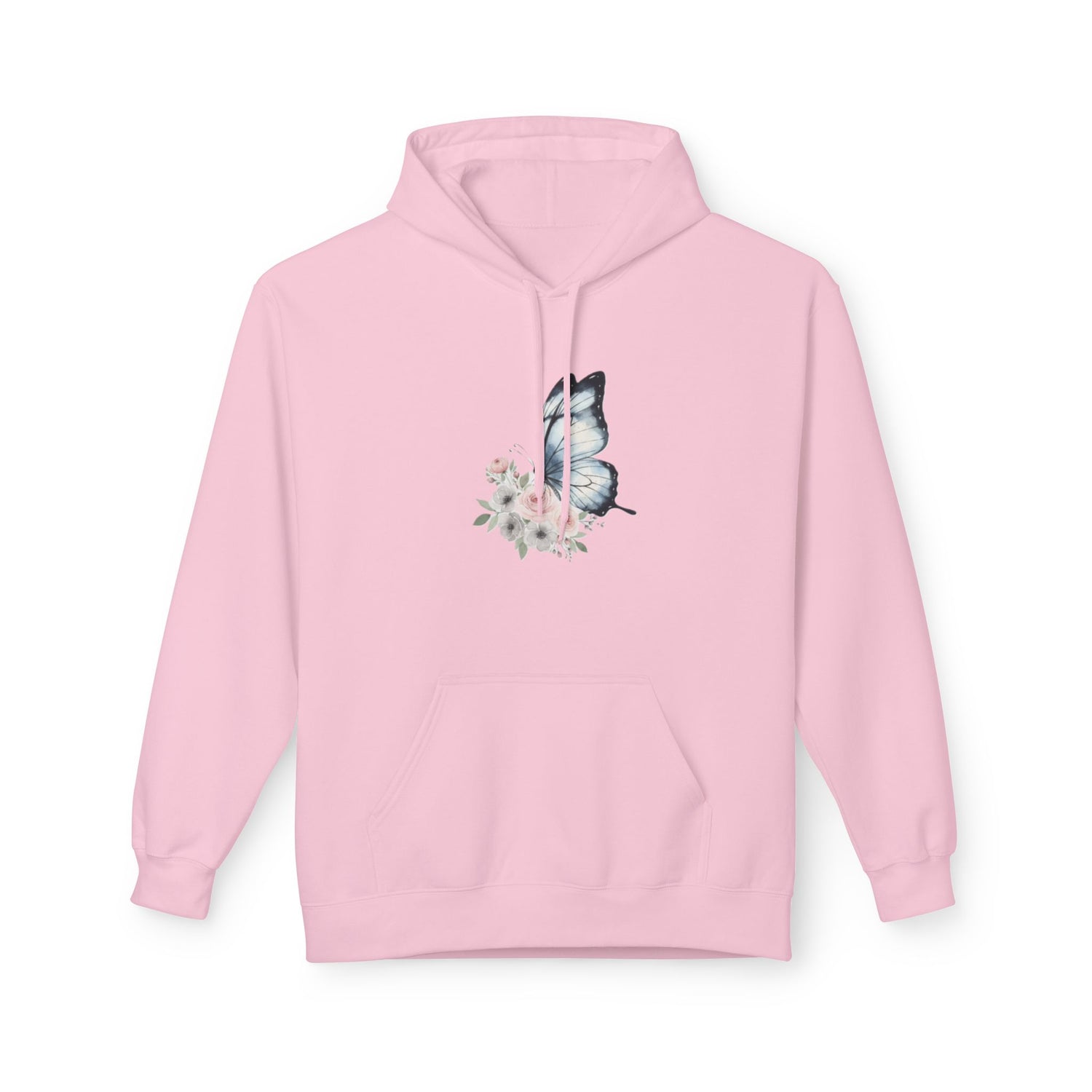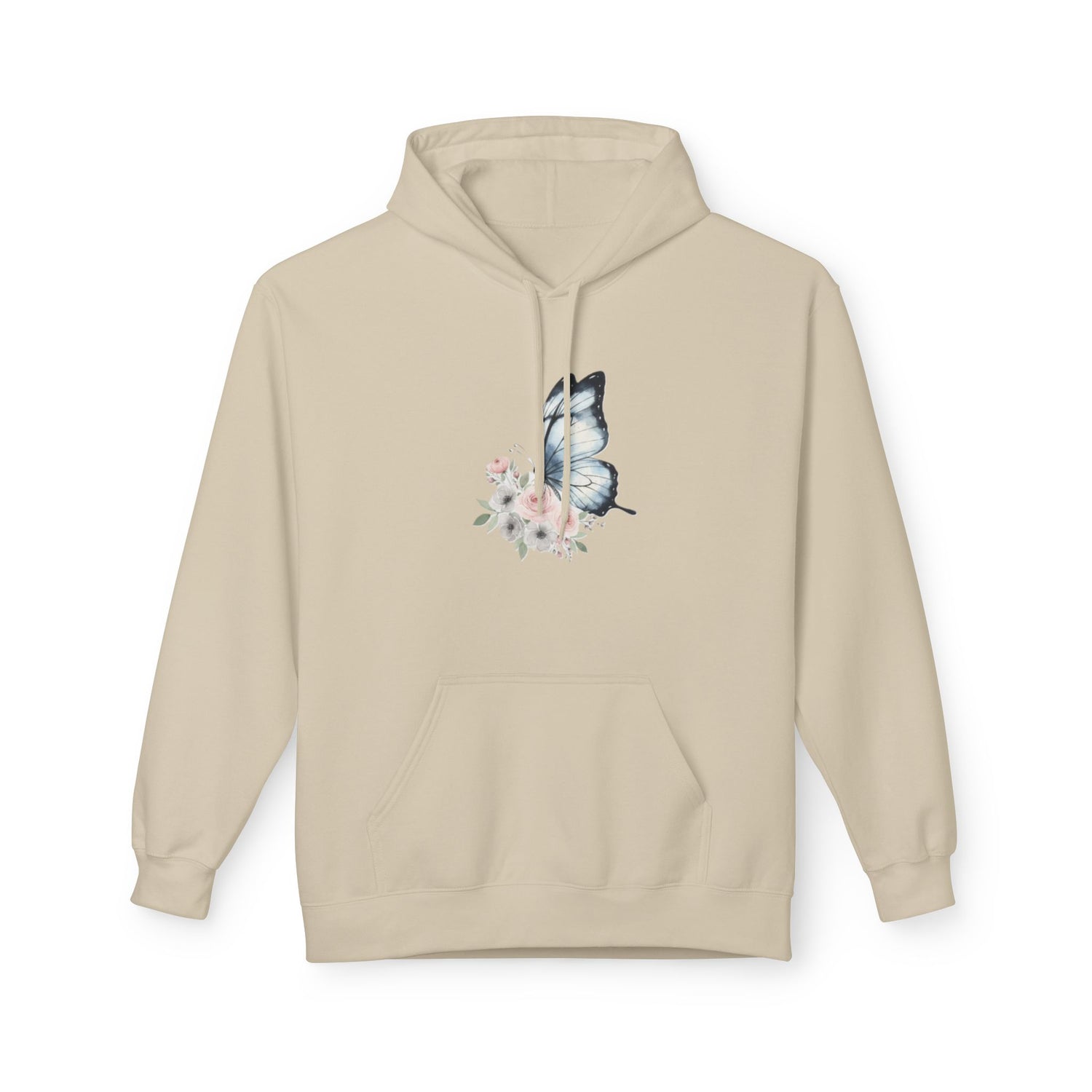Butterfly Floral Hoodie — Watercolor Blue Butterfly with Pink Flowers US