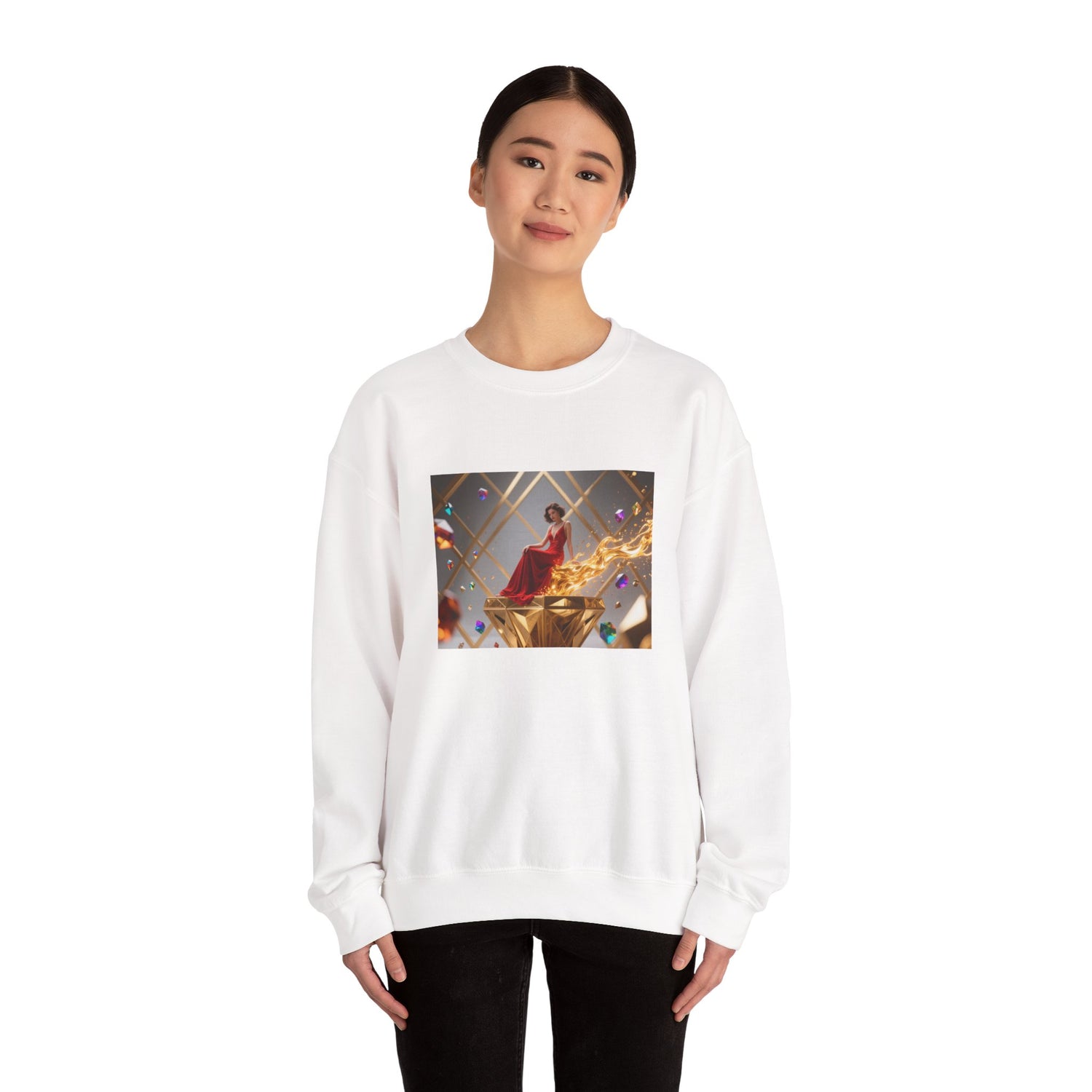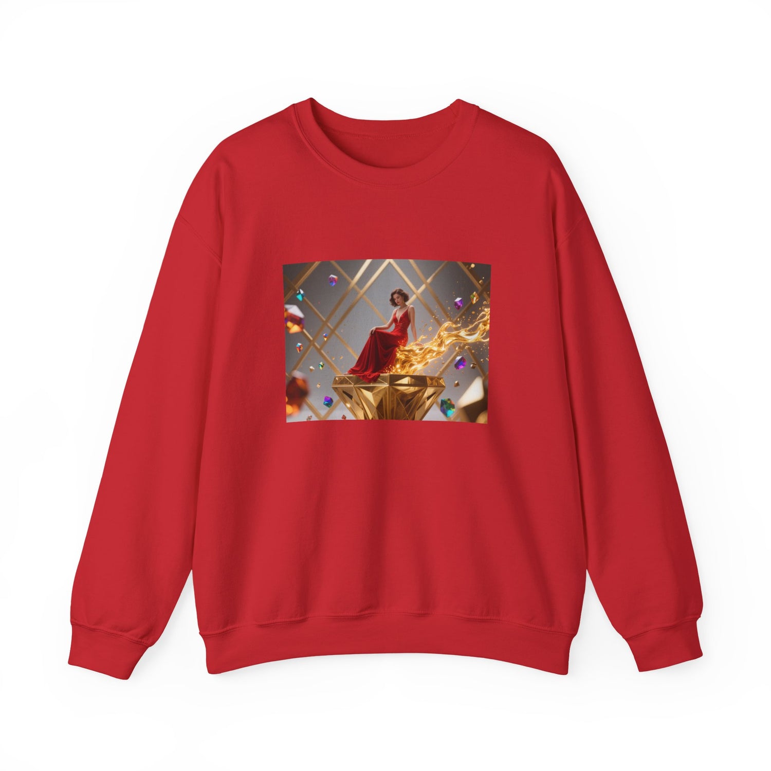 Crewneck Sweatshirt — Elegant Red Gown Art Print (Regal Celebration)
