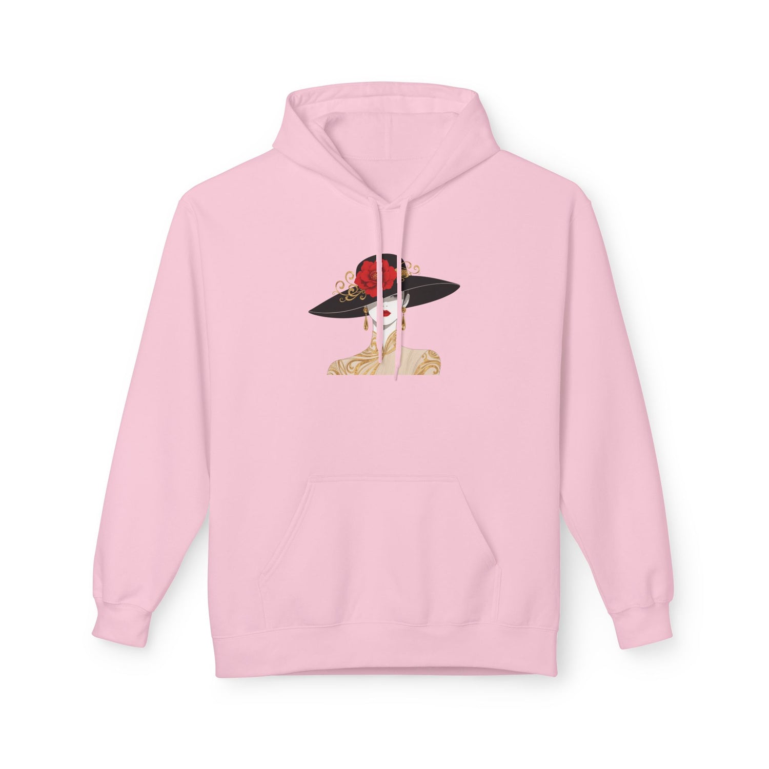 Elegant Lady in Wide-Brim Hat Hoodie — Fashion Illustration Pullover - S / Red is backordered and will ship as soon as it is back in stock.