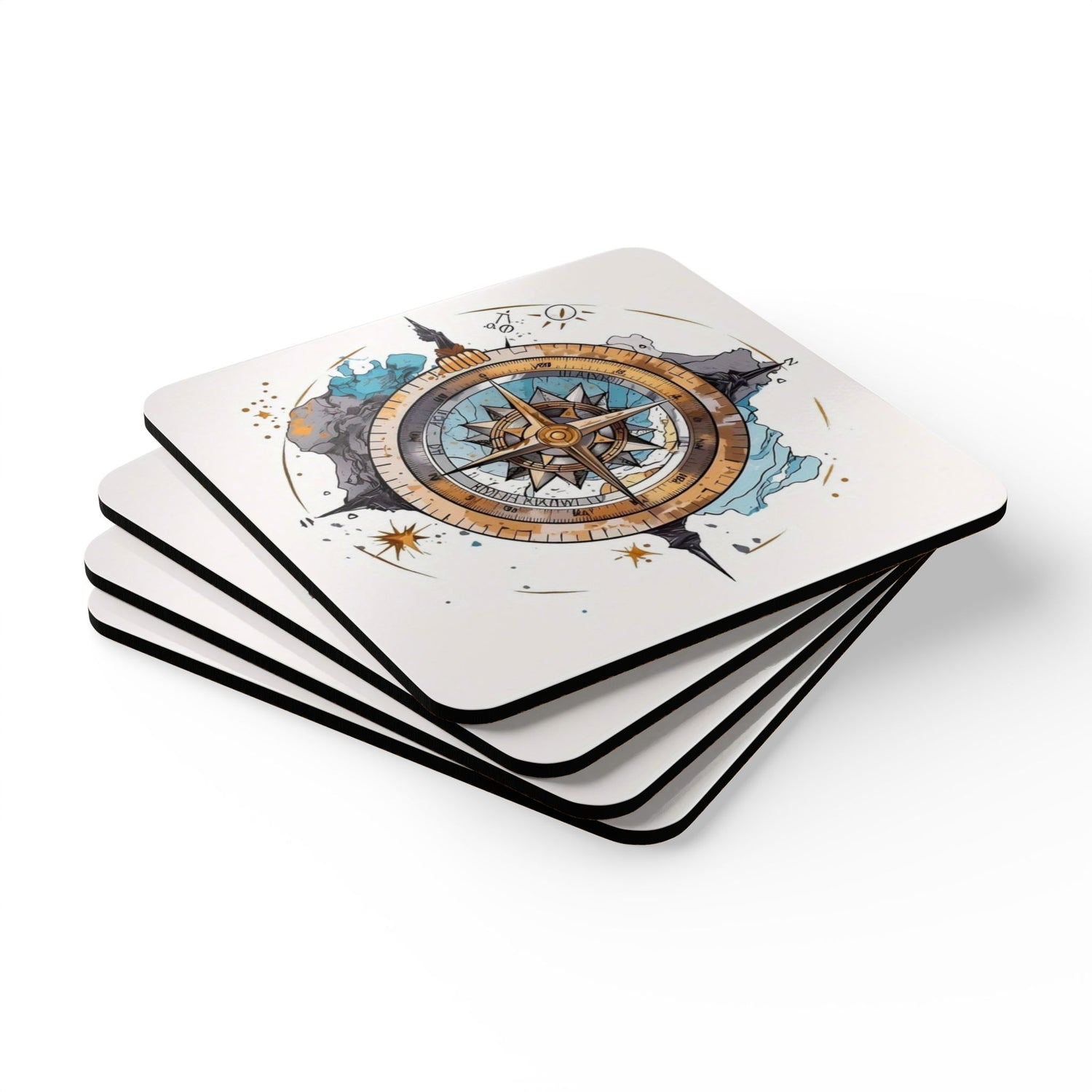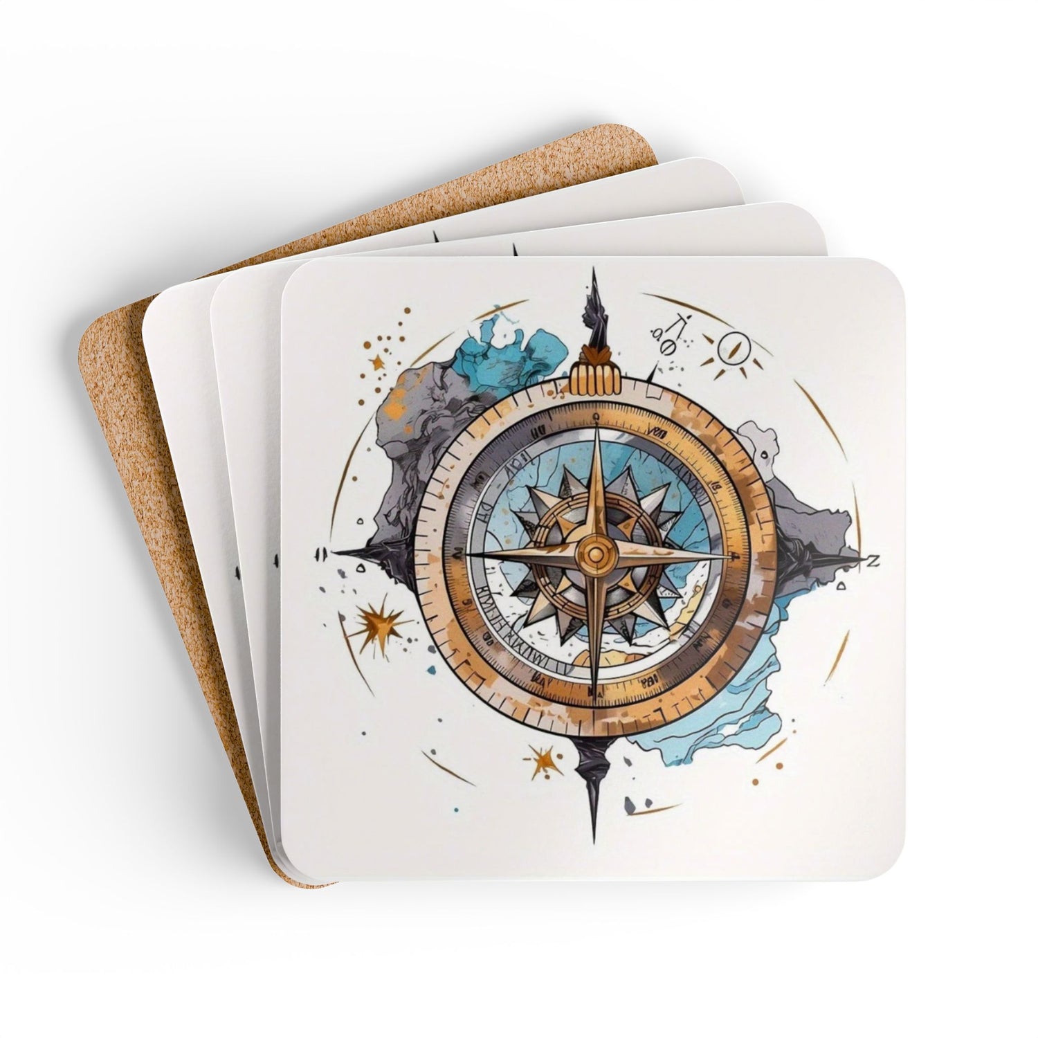 Nautical Compass Cork Coaster Set – Ideal for Home Decor and Gifts - Cork / 3.75" × 3.75" / Square is backordered and will ship as soon as it is back in stock.