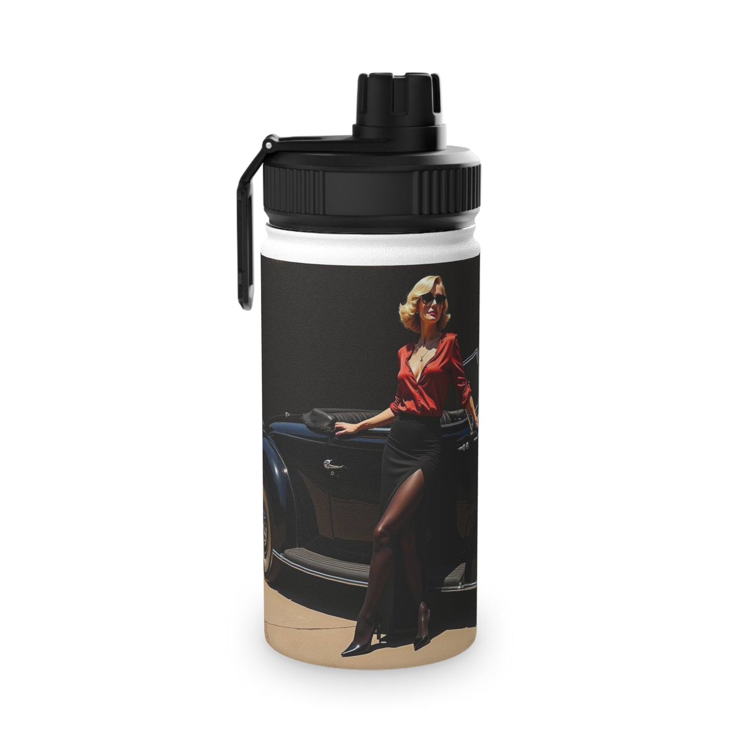 Vintage Car Stainless Steel Water Bottle — Retro Pin-Up Sports Lid - White / 12oz is backordered and will ship as soon as it is back in stock.